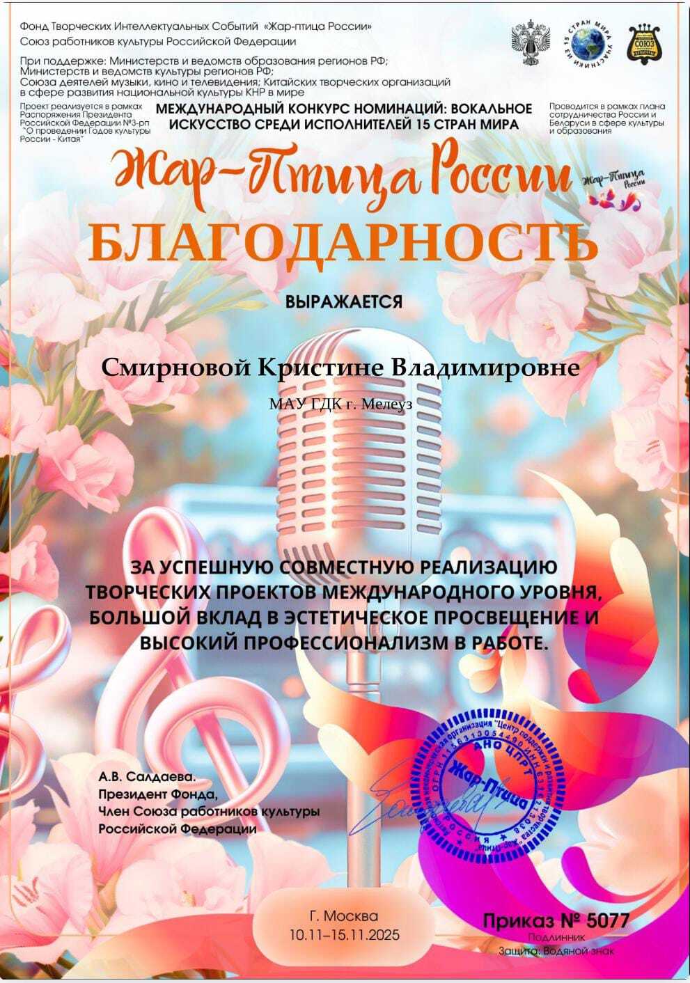 Рады сообщить о заслуженном успехе на Международном онлайн фестивале-конкурсе «Жар-Птица России» в Москве!