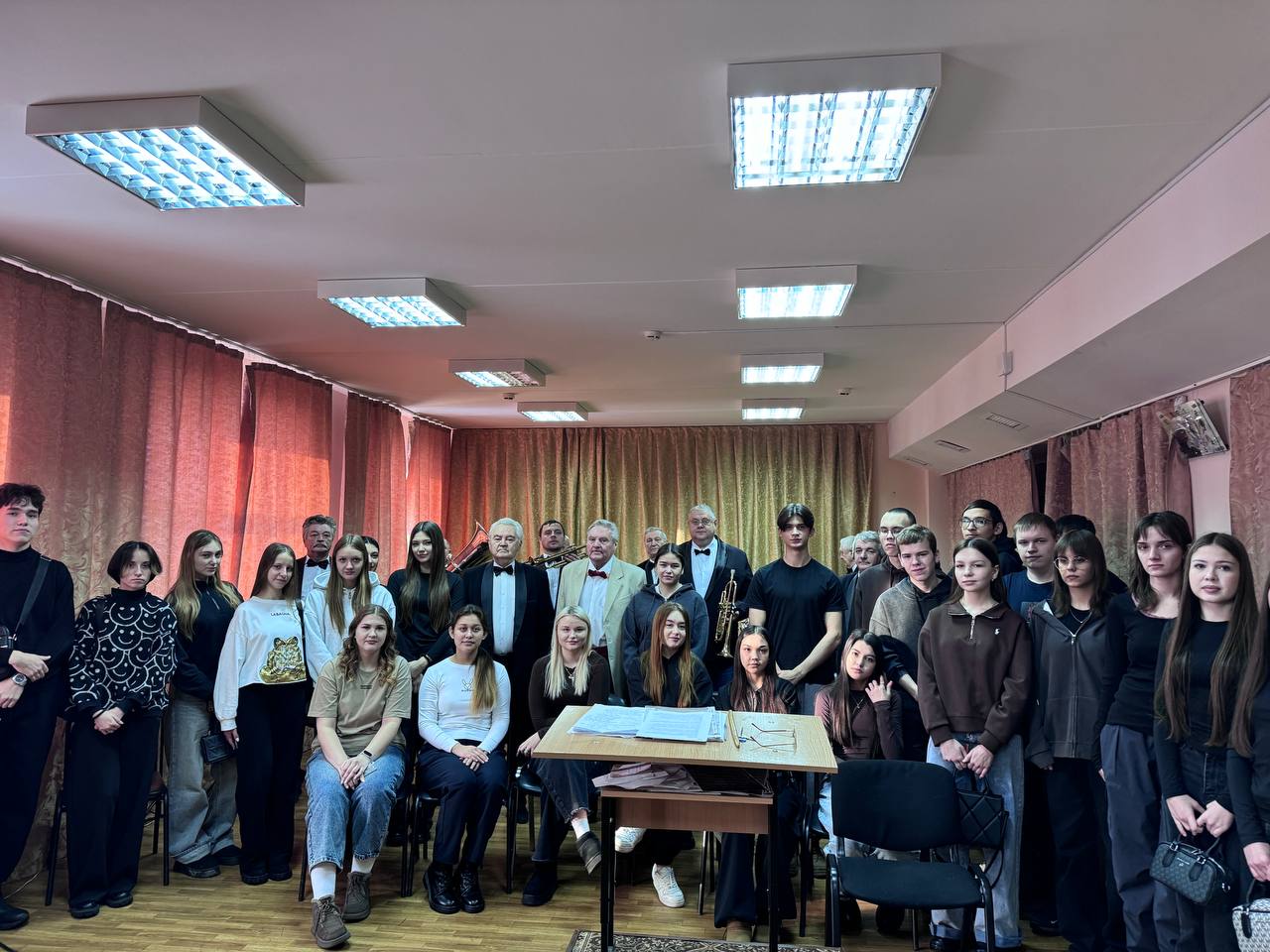В ходе мастер-класса Виктор Борисович подробно объяснял особенности исполнения, уделяя внимание фразировке, динамике и темпу. В этот день духовой оркестр играл просто потрясающе. Голос солиста Валерия Костина звучал красиво, добавляя глубину и очарование. Всем очень понравилось. В завершение мероприятия студентам пожелали дальнейших успехов в учебе и творчестве.