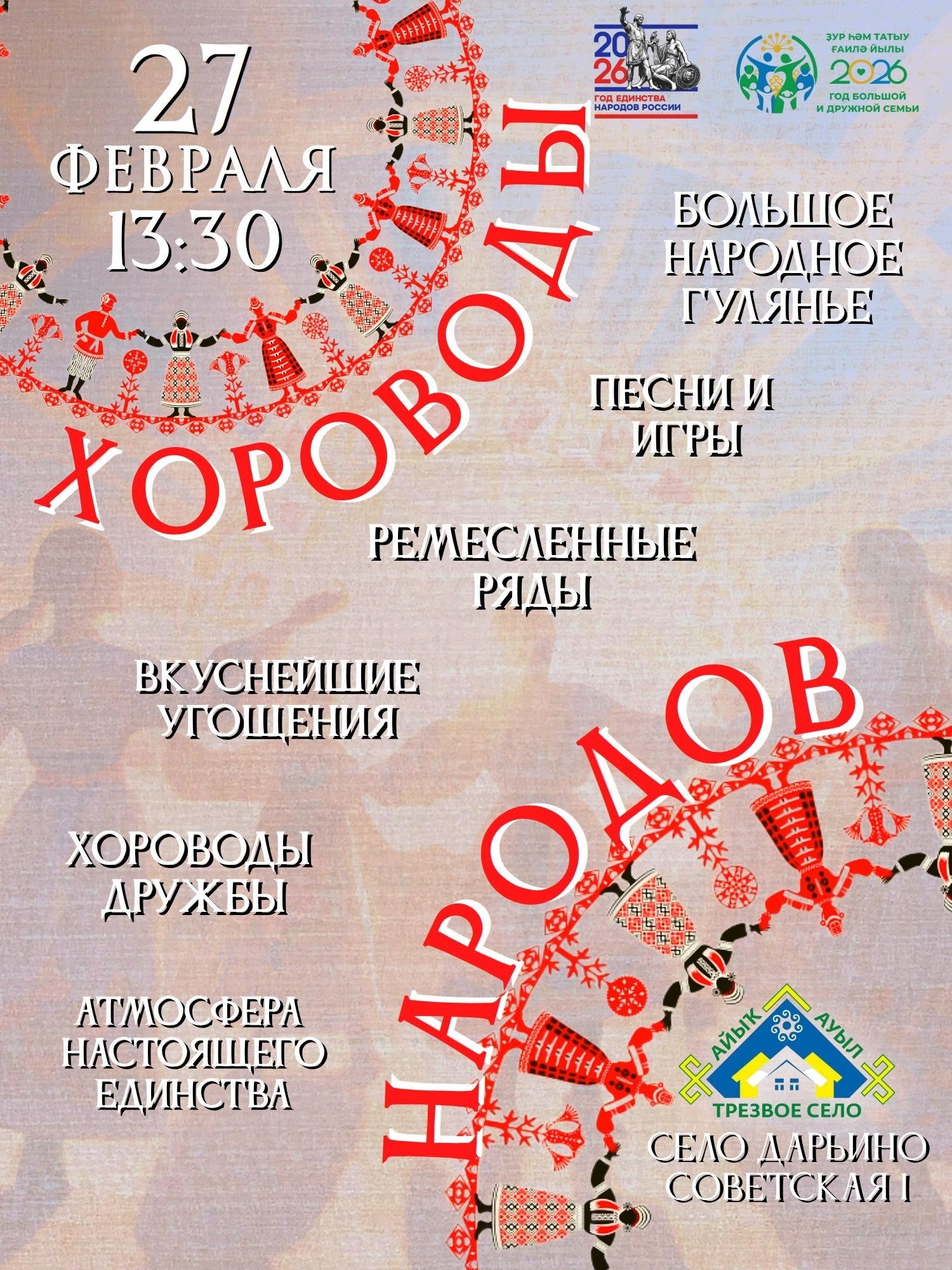 27 февраля в 13.30 приглашаем на "Хороводы народов", который пройдет в рамках проекта "Трезвое село".