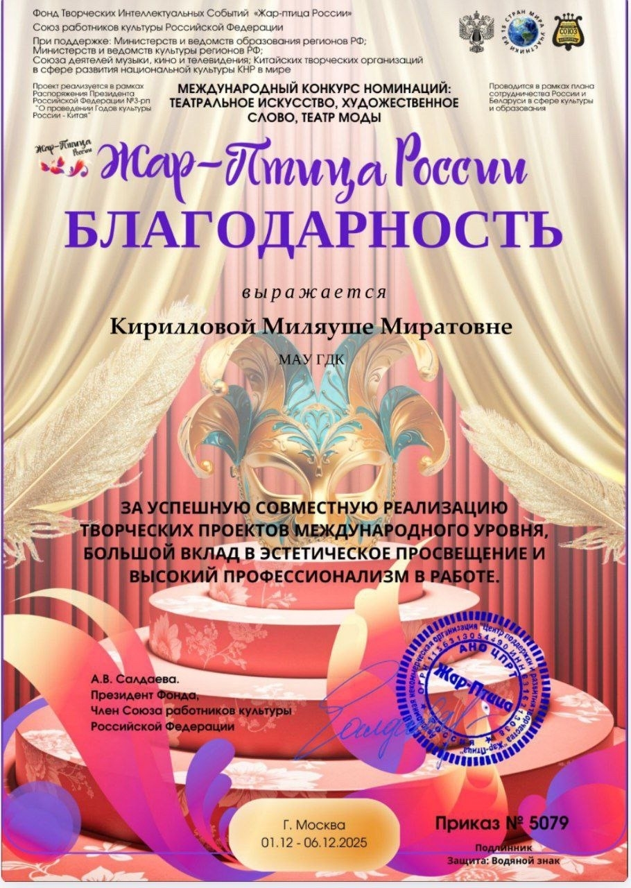 Победа на таком конкурсе - открывает новые горизонты, вдохновляет на новые свершения и дарит уверенность в своих силах. Желаем Родиону и его руководителю Миляуше Миратовне Кирилловой дальнейших успехов, вдохновения, новых ярких проектов, неиссякаемой энергии для покорения творческих вершин.