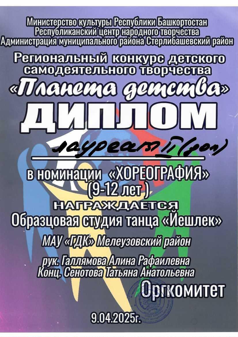 Поздравляем коллектив образцовой студии танца "Йэшлек" и руководителя Алину Галлямову с успешным результатом!