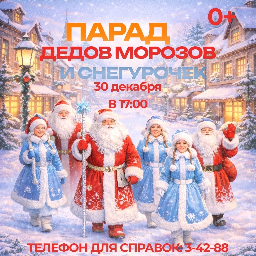 Приглашаем Вас 30 декабря в 17.00 на незабываемый ПАРАД ДЕДОВ МОРОЗОВ И СНЕГУРОЧЕК!
